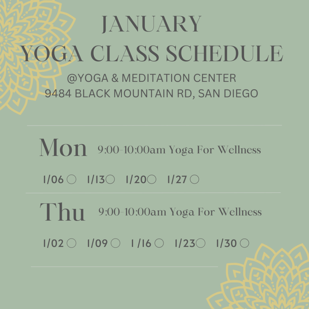 ☆ヨガクラス in San Diego、新年から月曜日クラスも加わります!