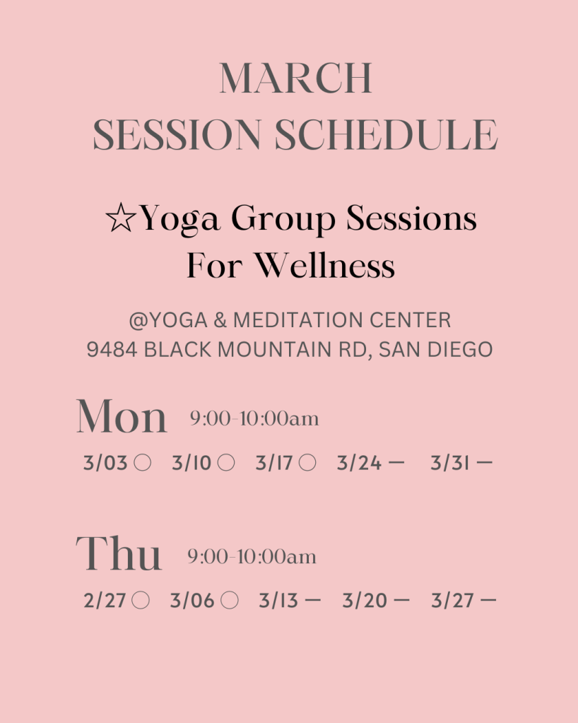 ☆ヨガのグループセッション(in San Diego)の3月のスケジュール